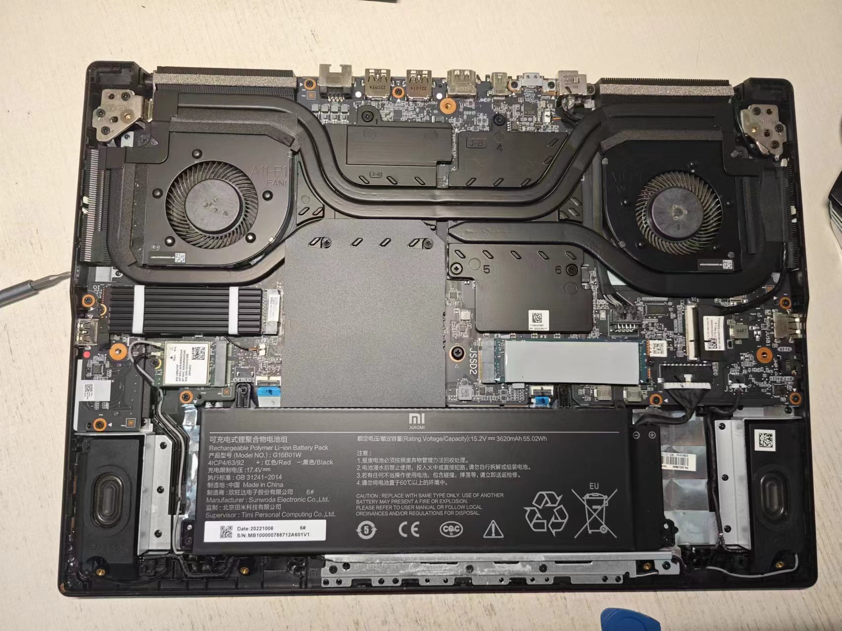 然后,我在京东买的固态硬盘(西数SN580,1TB)到货了,非常开心,拆机、安装一气呵成。我这台机器是“RedmiG游戏本2022(i5-12450H)”,刚好支持两个M2接口的硬盘扩展位,但第二个位置仅支持Pcle3.0(原装位置是支持4.0的),这意味着读写速度会慢一截;不得不说,小米/红米对机器细节阉割的刀法真是精的很。话又说回来,商人嘛,都是以赚钱为目的,可以理解。但是这台机器对我这种偶尔看看小电影,几乎不打大型游戏的人来说(其实像LOL这种小游戏我都不玩,并不是电脑带不动,而是我这人没有电脑游戏的欲望),完全够用了(除了续航差了一些,充满电可用2小时)。我平时就拿来,写写博客或者代码。现在回想起来,还有点小遗憾:我又不打游戏,早知道就买个CPU最好的,哪怕是只带核显的轻薄本也好了,哈哈哈哈。现在想想,也没关系啦,反正也考完研了,不需要去图书馆了,经常插着电也无所谓啦,就当台式机用呗。3050的显卡,等我想玩了,也是可以中画质玩一些大型主机游戏的。正所谓:可以不用,但不能没能嘛。