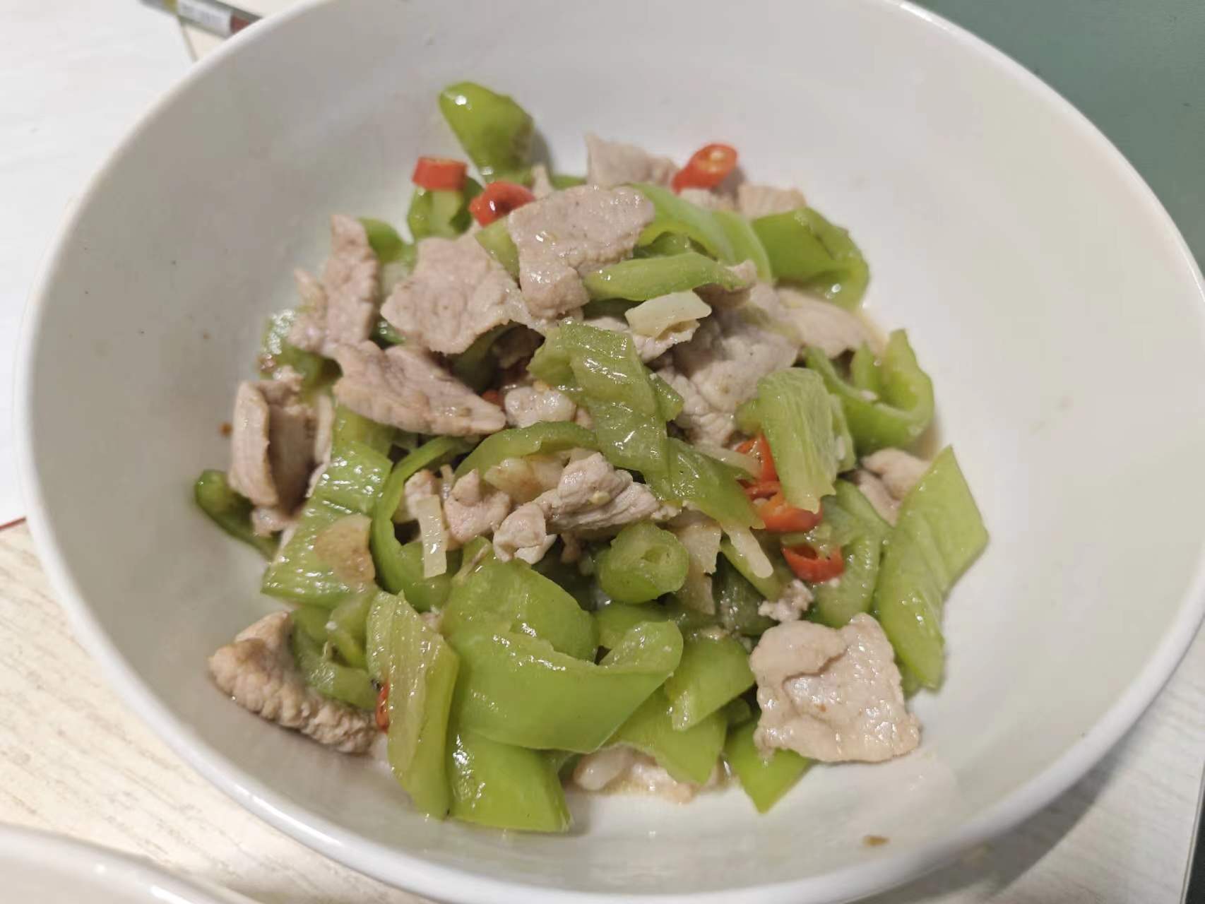 上图为:今晚自制的“青椒炒肉”