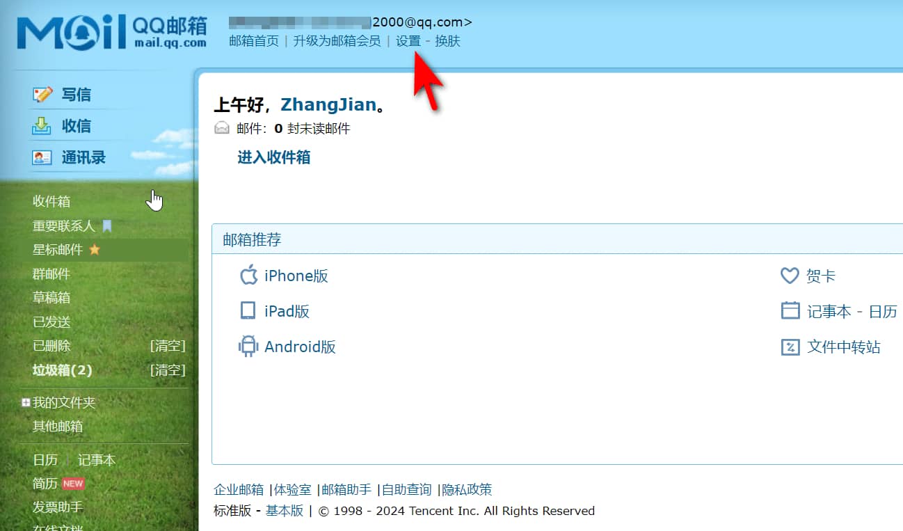 2.在电脑的浏览器中,打开QQ邮箱的网页版,登录后,点击顶部的【设置】,