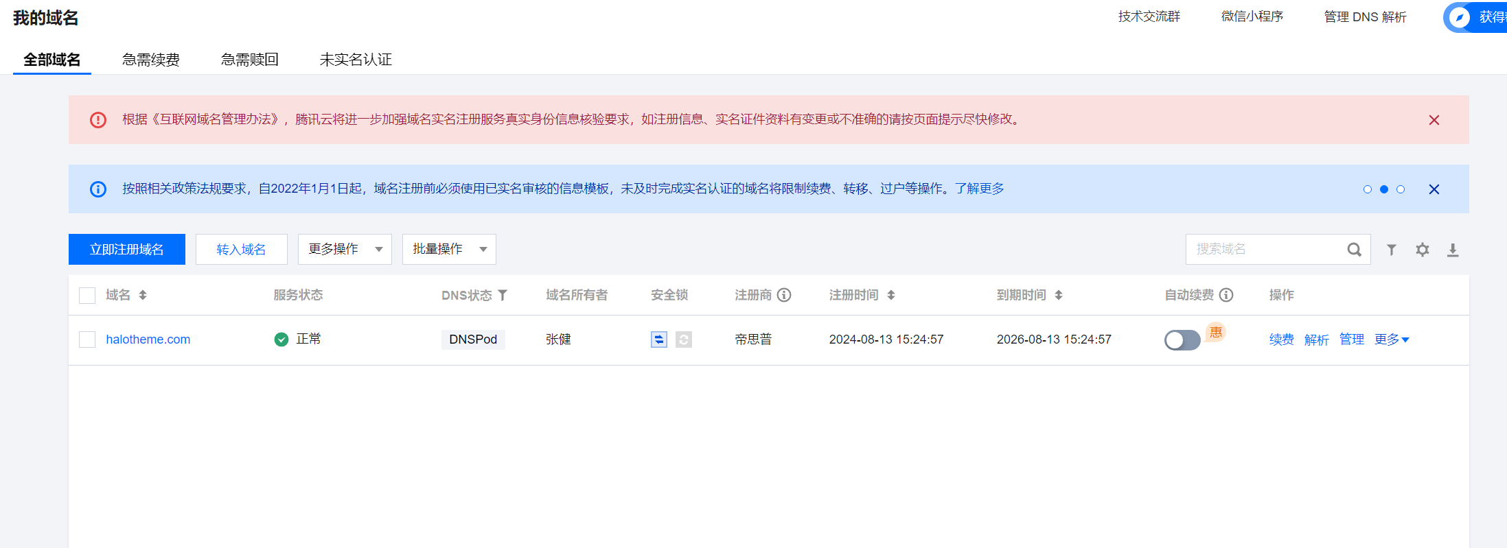 2024年8月13日下午,经过一番搜寻,我成功地注册了新域名【halotheme.com】,这也是我首次购买.com域名,该域名将用作我们最新的wordpress主题(ipress)官网。