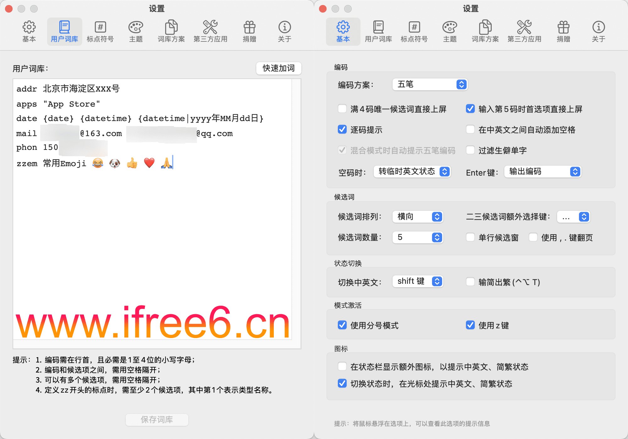 基于纯文本的用户词库(control+option+command+]),快速输入属于自己的词。