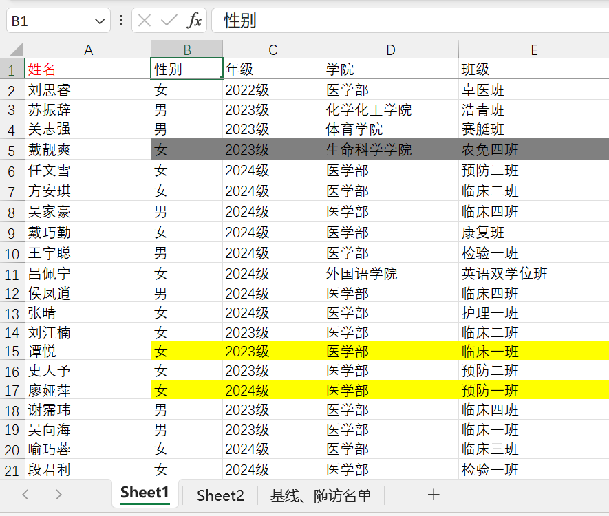 1.切换到需要填写结果的表(基线、随访名单);