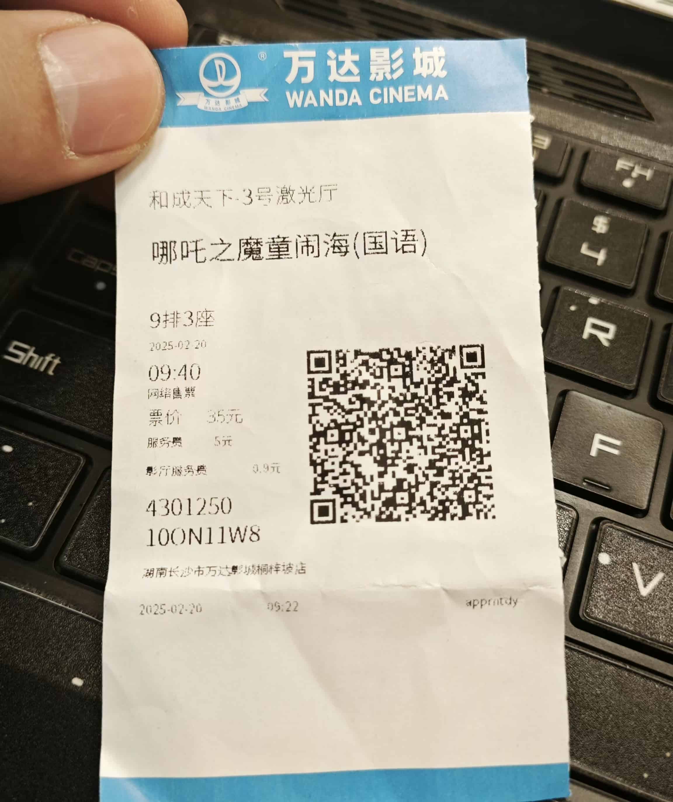 其实今年过年之前就传出《哪吒2》的宣传片了,那个片子特效真的很不错,很早就想看了。正好,回到学校后,我室友(李佳航)也没有看,于是我们就商量着哪天一起去电影院看看。然后,看了一下价格,排除了一下上课时间,就定在了今天(2.20)上午。
