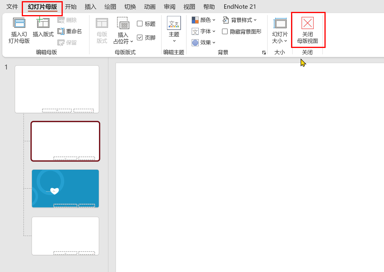 6.最后,点击“幻灯片母版”菜单下的“关闭母版视图”回到正常视图中。现在右下角应该可以看到页码了。