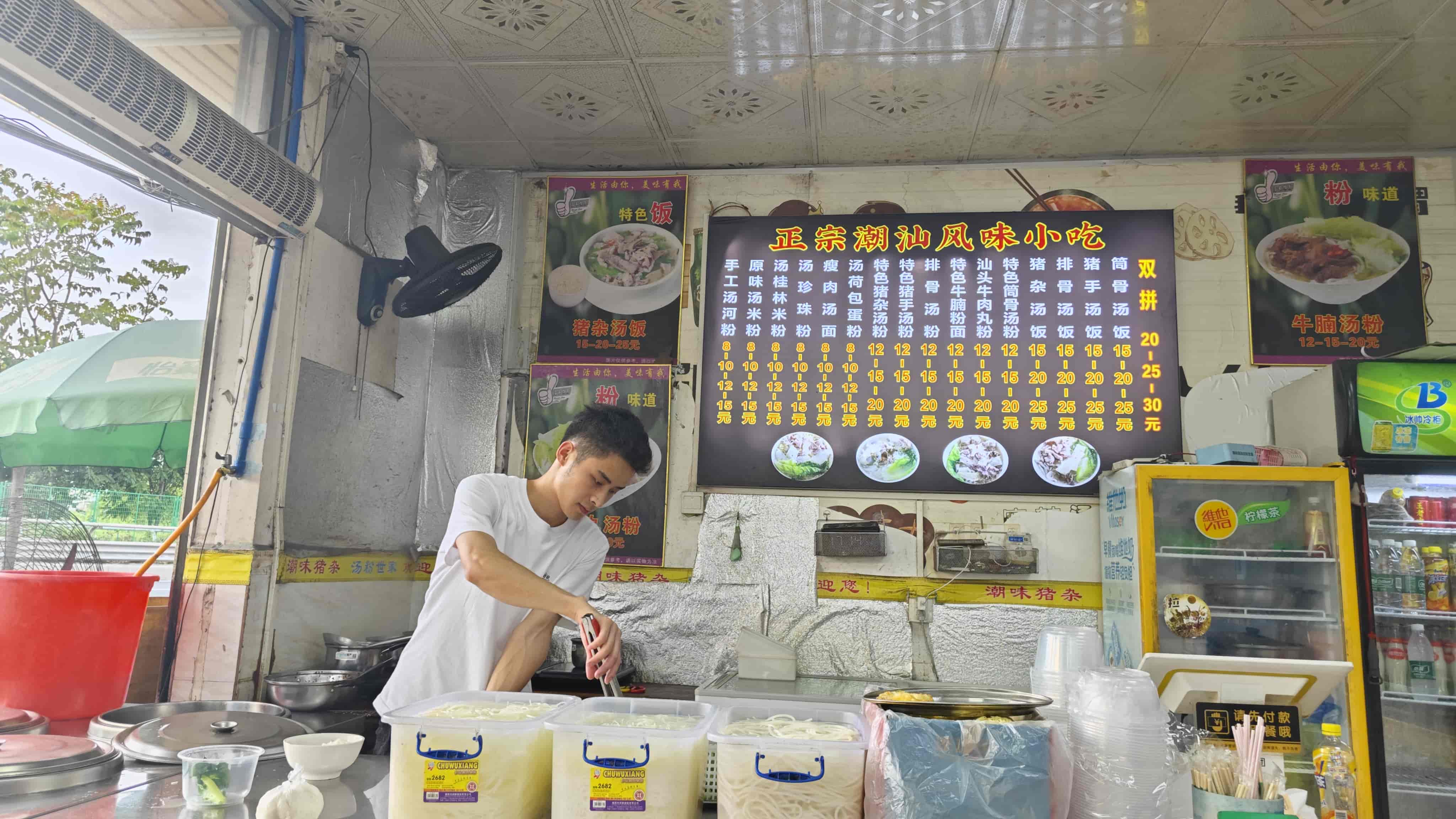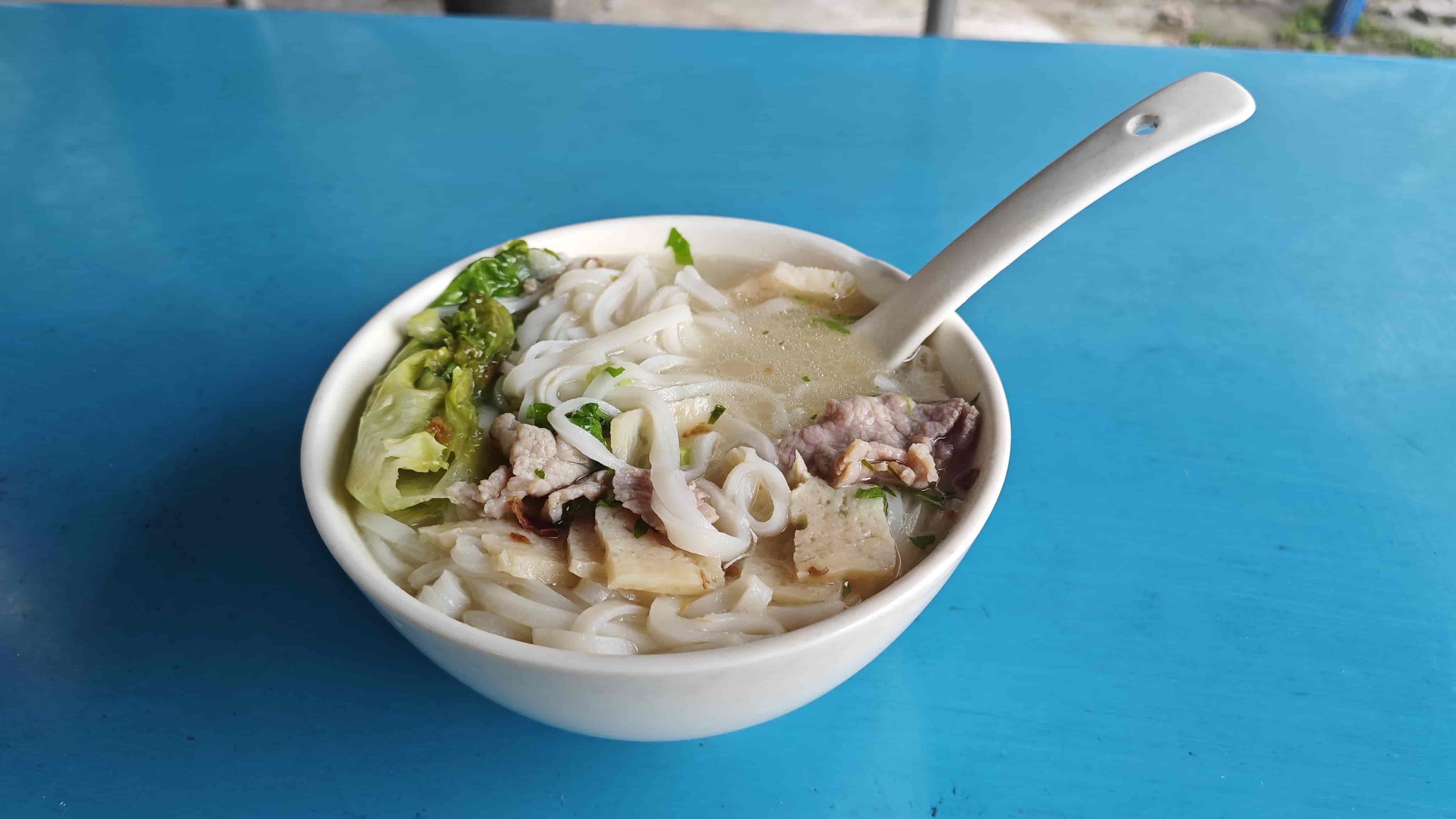 没想到陈老板那儿距离白云站还挺远(虽然也在白云区),大概坐了1个小时多才到他那边,出站后(新和站),还需要走路1.2km,幸运地是我走了快1km后,他骑着小电驴来接我了(他店里目前就两人值班,有点忙)。然后给我下了碗瘦肉粉(做事还是非常认真的),还有广东这边的辣椒(不辣哦),味道还可以。