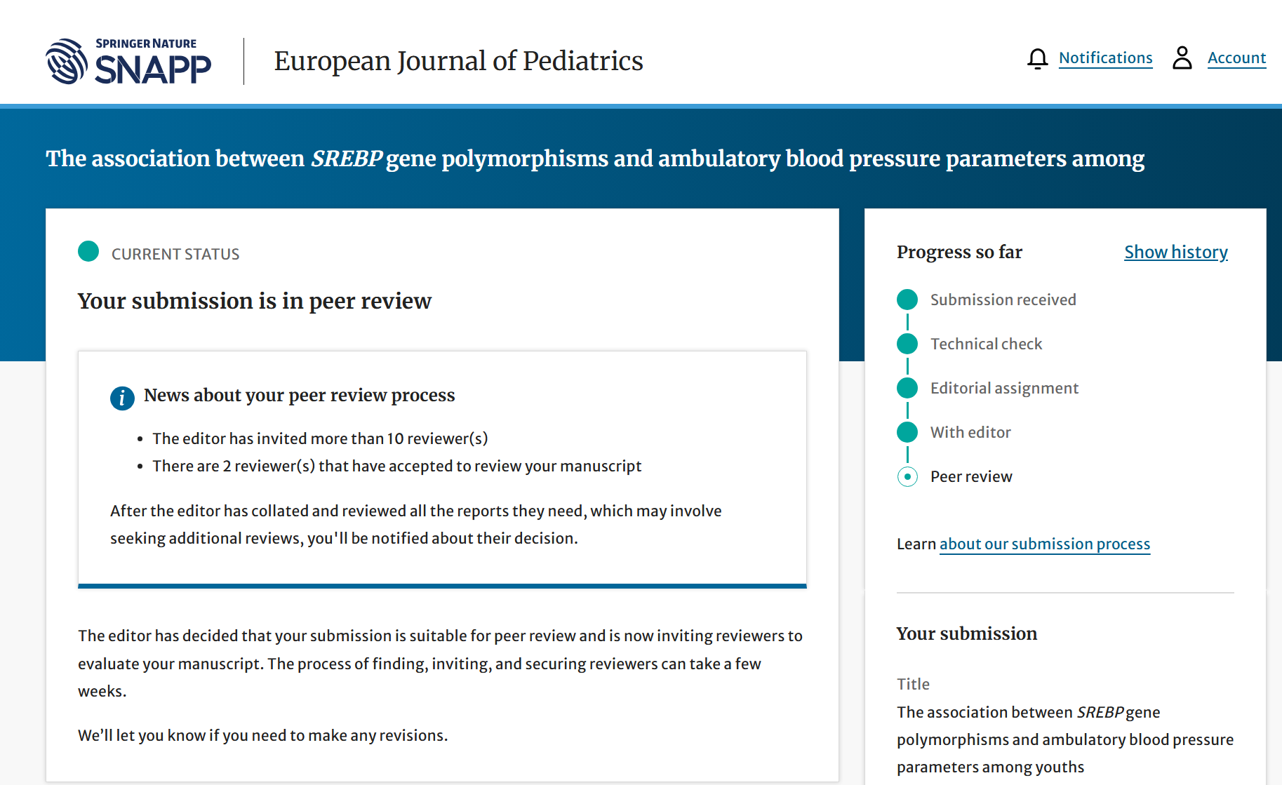 我现在的想法是发一篇中文核心和一篇英文SCI。英文的投了好几个国外期刊,但被距了2次(American Journal of Hypertension和Hypertension Research),目前还在投稿中(European Journal of Pediatrics),编辑已经通过了,专家正在查看中。看着这个进度,迟迟没有结果,内心特别煎熬……