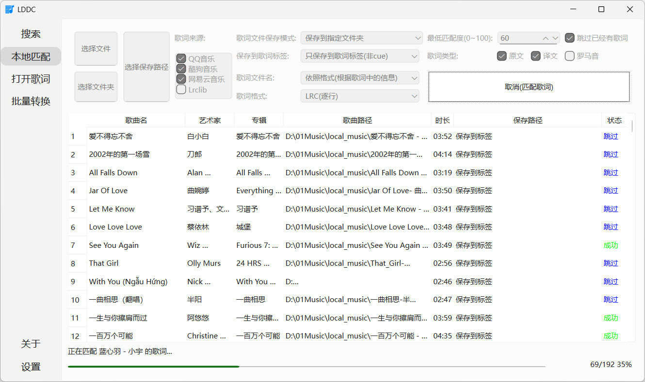 🎯 本地歌词匹配:一键为本地歌曲文件精准匹配歌词,采用多线程匹配提高匹配速度。
