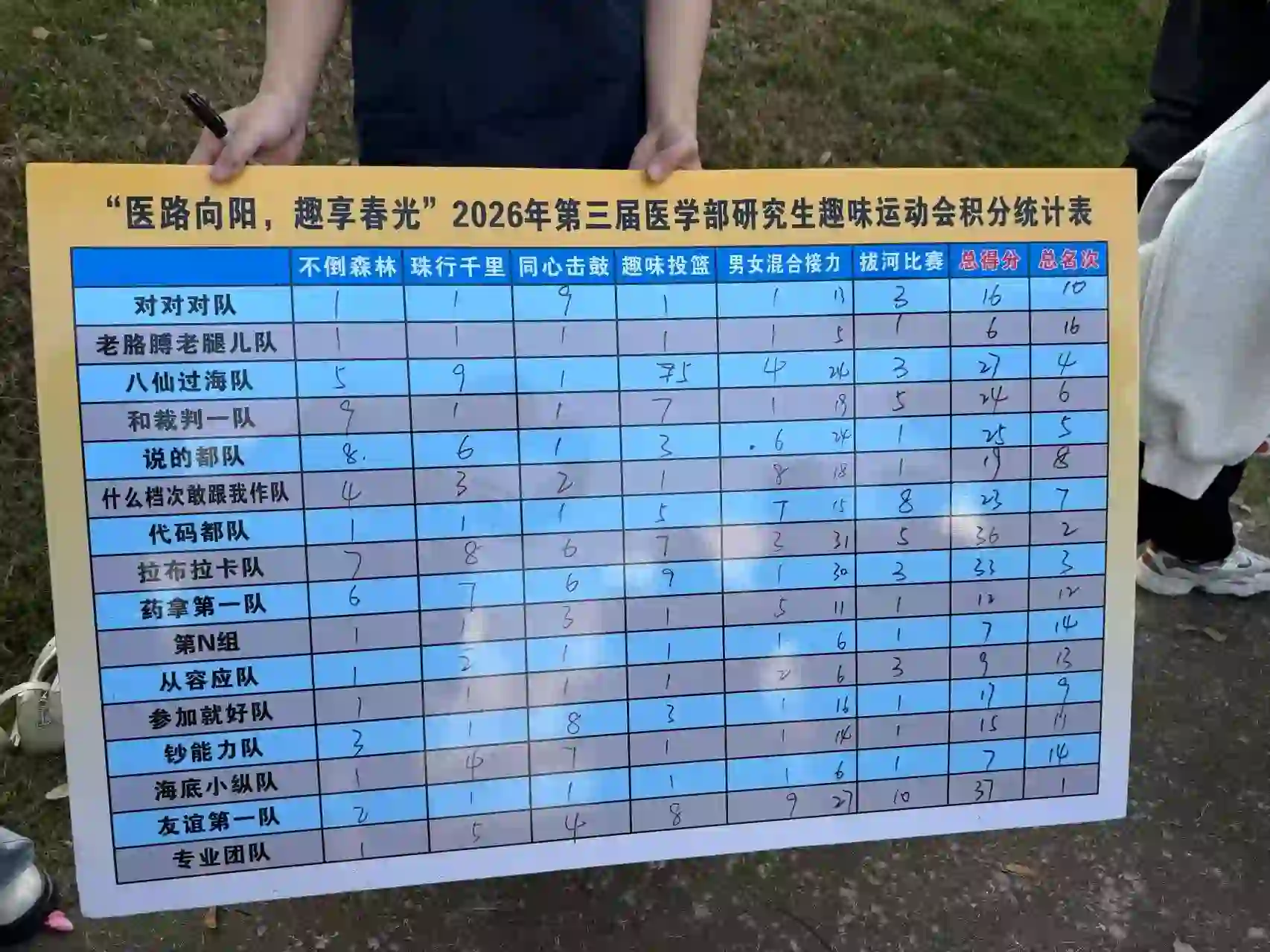 2026年4月25日,周六,风和日丽,在师大医学部的足球场上,举行了一年一度的研究生趣味运动会。